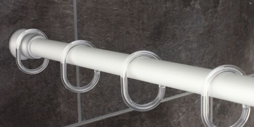 Für alle anderen Duschtassen oder Badewannen gibt es unsere Universal-Duschvorhangstange, welche in L- oder U-Form sowie als lange Gerade zu unterschiedlichen Längen zusammengesteckt und mithilfe von Schrauben und Dübeln an der Wand montiert werden kann. Die farblich passend abgestimmte Wandhalterung ist dabei so konzipiert, dass bei Austausch oder Reinigung nicht gleich die ganze Konstruktion abgeschraubt werden muss, sondern Sie können die Stangen einfach aus den Wandhalterungen herausschieben. Und sollte Ihnen die Duschvorhangstange zu instabil wirken oder sein, können Sie diese mit unserer Deckenstütze stabilisieren. Die Deckenstütze ist mit einer Standardhöhe von 55 cm an die meisten Deckenhöhen angepasst, lässt sich aber bei Bedarf ebenfalls problemlos kürzen. Hinzu kommt, dass der Auflagewinkel, welcher das Rohr der Duschvorhangstange aufnimmt, so konstruiert wurde, dass er in Kombination mit unseren Duschvorhangringen „Wien“ keine Sperre bildet, sondern die Ringe lassen sich problemlos von einer Seite zur anderen schieben.