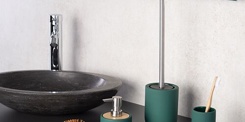 The practical accessories are made of ceramic with a soft-touch surface and bamboo elements. Available in the colours black, white and dark green, the accessories impress with their style and flexibility.