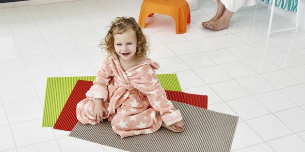 The PVC foam mat is suitable for many things. It can be used as anti slip rug in the kitchen, bath or corridor, as anti slip underlay for your carpets, as yoga or fitness mat, as door mat for your camping van, house, apartment, sauna or balcony – the list is endless.
