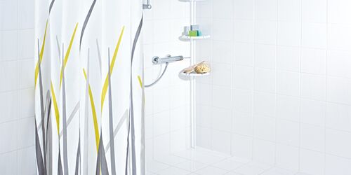 Often, shower curtains are the more affordable option compared to installed shower cabins. Furthermore, they are available in huge different designs and colours, which allows you to redesign your shower, bathtub and so your bathroom quickly and spontaneous.