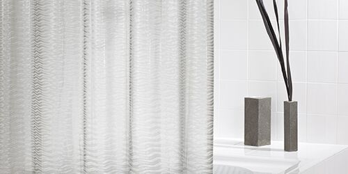 Often, shower curtains are the more affordable option compared to installed shower cabins. Furthermore, they are available in huge different designs and colours, which allows you to redesign your shower, bathtub and so your bathroom quickly and spontaneous. Our shower curtain Silk is kept in a classy chic look: It is semi transparent with elegant horizontal embossing, which makes it look very expensive. This shower curtain is made of 100% EVA (Polyethylene Vinylacetat) and is equipped with extra big integrated holes on which the shower curtain can be fixed without buying additional hooks. This shower curtain is 100% waterproof.