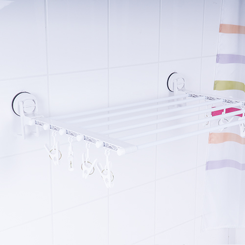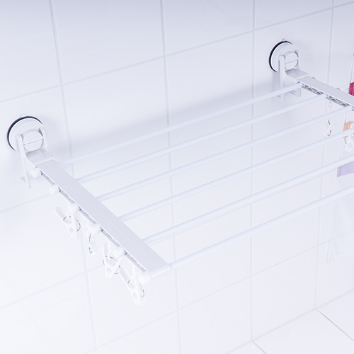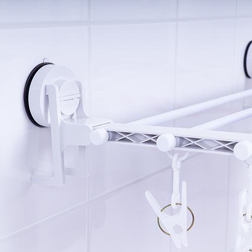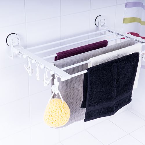 The RIDDER clothes dryer with suction cups is the must-have item for small rooms and left-over laundry. Six rows provide plenty of space for socks, towels and smaller items. Additionally the laundry rack includes small rings in which clothes hangers or pegs can be hung.