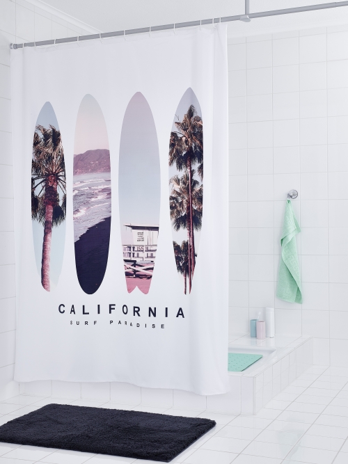It is made of 100% polyester and equipped with an environmentally friendly weighted band. Furthermore, the California shower curtain is ÖkoTex certified.