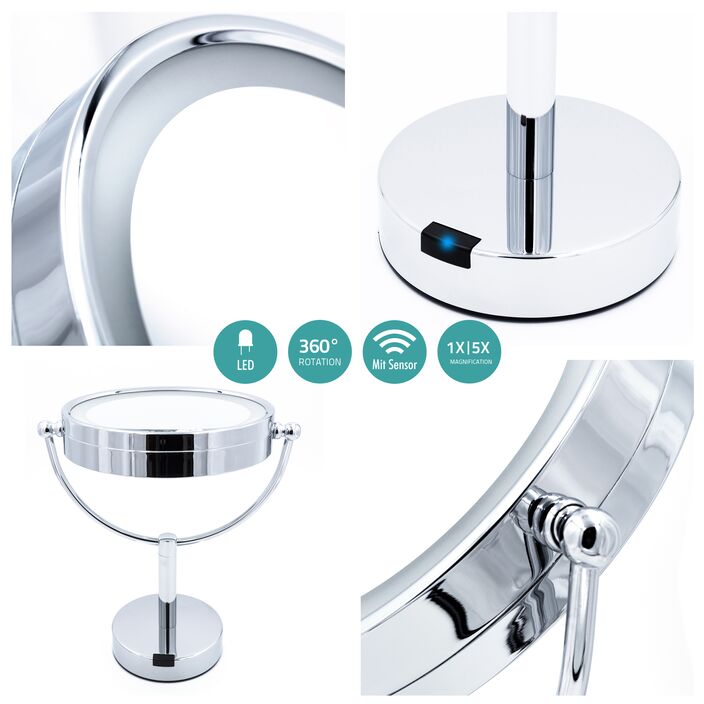 The LED light switches on automatically via a motion sensor and is just as easy to switch off again. Due to the all-round LED light, you avoid shadows on your face and your make-up or shave will be perfect. The power supply can be either battery or mains operation.