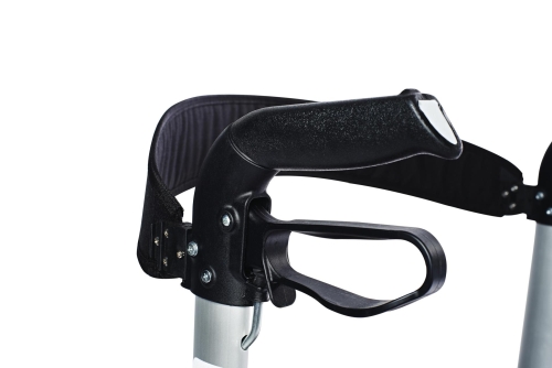 The RIDDER walker Mio is equipped with reflectors, a walking stick holder and a bag which helps you to manage your everyday life independently. With the parking brake on, you can even sit on the walker, take a break and lean back to the back rest.