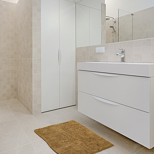 Our bathroom only feels complete with a stylish and comfortable rug. It keeps your feet warm, the ground dry and besides it is part of the interior design of the bath.