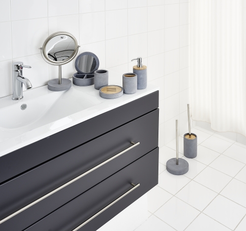Additional to these items we offer a suitable make-up mirror and a spare toilet paper holder in cement look, which complete the whole line.