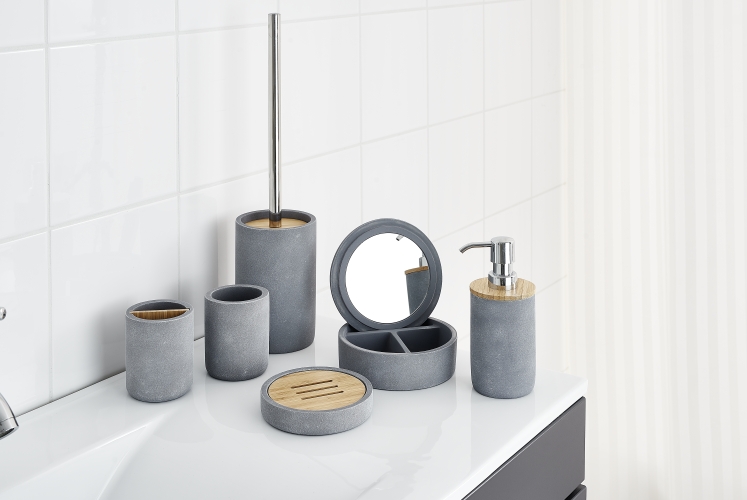 The items fromt this series, which includes tumbler, soap dish, soap dispenser, toothbrush holder, cosmetic box and toilet bruash are real eyecatchers in your bathroom.