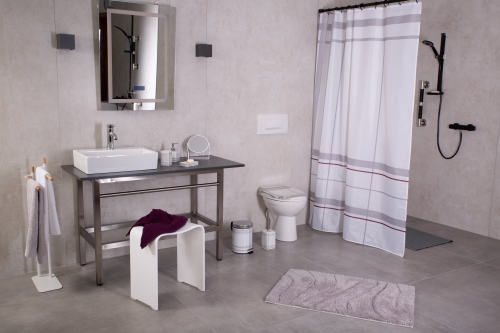 So that the accessories do not have to be lifted when wiping and cleaning, the tumbler and soap dispenser can be combined with our universal Invisible wall holder and thus attached to the wall.