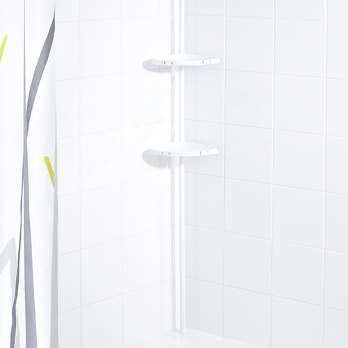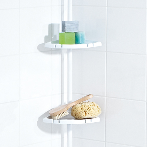 Ohne Bohren wird die sogenannte Federstange einfach zwischen Boden und Decke eingeklemmt und hält dort im Idealfall ein Leben lang. Ausziehbar von 130 – 260 cm und in schlichtem weiß bietet das Dusch-Eckregal Flexibilität und die Möglichkeit der Ablage ohne Bohren.