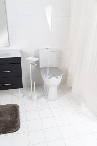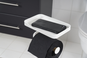 Die Stand-Garnitur vereint gleich drei Funktionen: WC-Papierhalter, WC-Bürste und Ablage. Wobei die Ablage dabei variabel Nutzbar ist, egal ob Sie hier Ihr Handy oder die Toilletten-Feuchttücher ablegen möchten.
