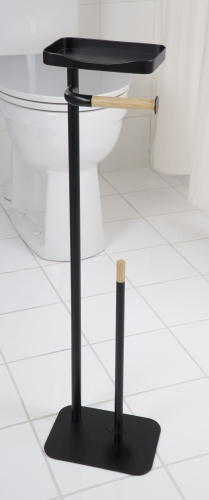Die Stand-Garnitur vereint gleich drei Funktionen: WC-Papierhalter, WC-Bürste und Ablage. Wobei die Ablage dabei variabel Nutzbar ist, egal ob Sie hier Ihr Handy oder die Toilletten-Feuchttücher ablegen möchten. Und selbstverständlich ist auch der WC-Bürstenkopf austauschbar, so dass bei Abnutzung nicht gleich eine neue WC-Bürste oder gar ein neue Stand-Garnitur gekauft werden muss.