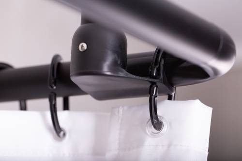 Und sollte Ihnen die Duschvorhangstange zu instabil wirken oder sein, können Sie diese mit unserer Deckenstütze stabilisieren. Die Deckenstütze ist mit einer Standardhöhe von 55 cm an die meisten Deckenhöhen angepasst, lässt sich aber bei Bedarf ebenfalls problemlos kürzen. Hinzu kommt, dass der Auflagewinkel, welcher das Rohr der Duschvorhangstange aufnimmt, so konstruiert wurde, dass er in Kombination mit unseren Duschvorhangringen „Wien“ keine Sperre bildet, sondern die Ringe lassen sich problemlos von einer Seite zur anderen schieben.