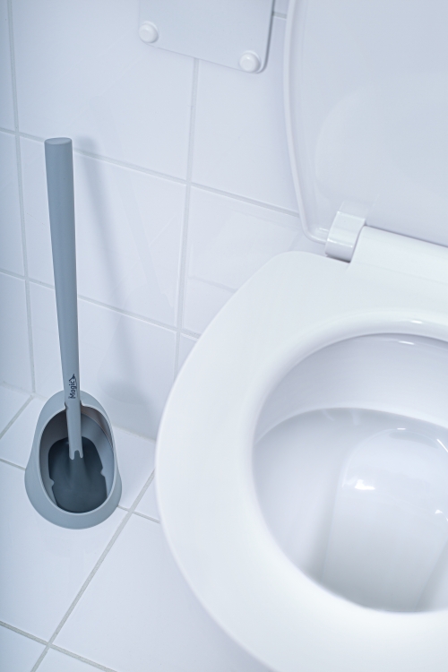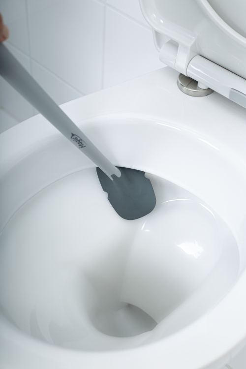 Am besten nach jedem Toilettengang mit der WC-Bürste die Toilette auswischen und auch unter dem Rand entlangfahren. Hierzu eignet sich die Silikon-WC-Bürste „Magic“ von RIDDER, da sie aufgrund ihrer Beschaffenheit den Toilettenrand hygienisch rein wischt.