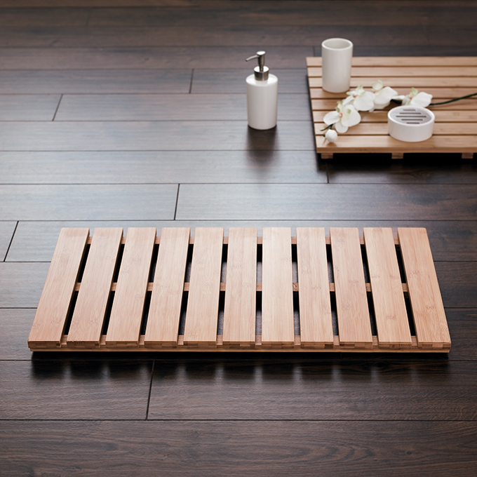 竹のカーペットは、バスルームがナチュラルな見た目をもたらすだけでなく、耐久性に優れ、抗菌性や調湿性も高いのが特徴です。